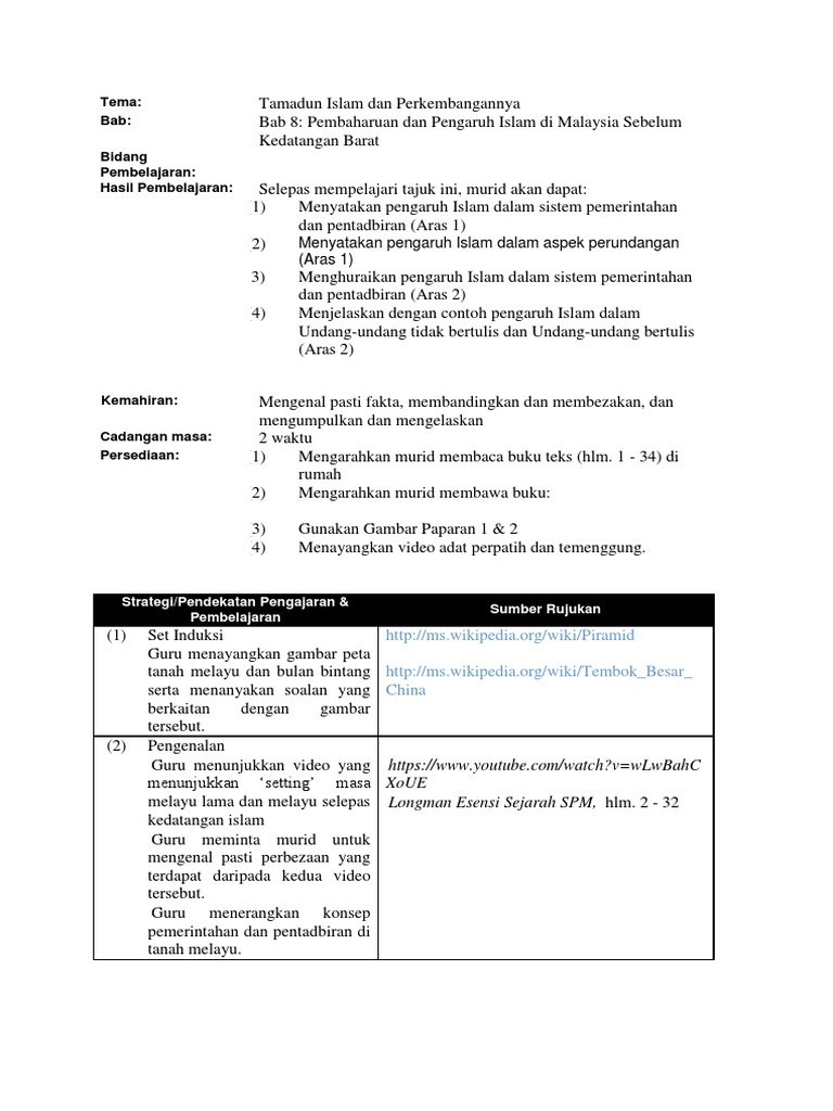 1 - 34 Longman. 2Kemudian jawapan akan disemak dengan meminta pelajar menukar kertas soalan. Rancangan Pengajaran Harian Sejarah Tingkatan 2 Hari Tarikh.