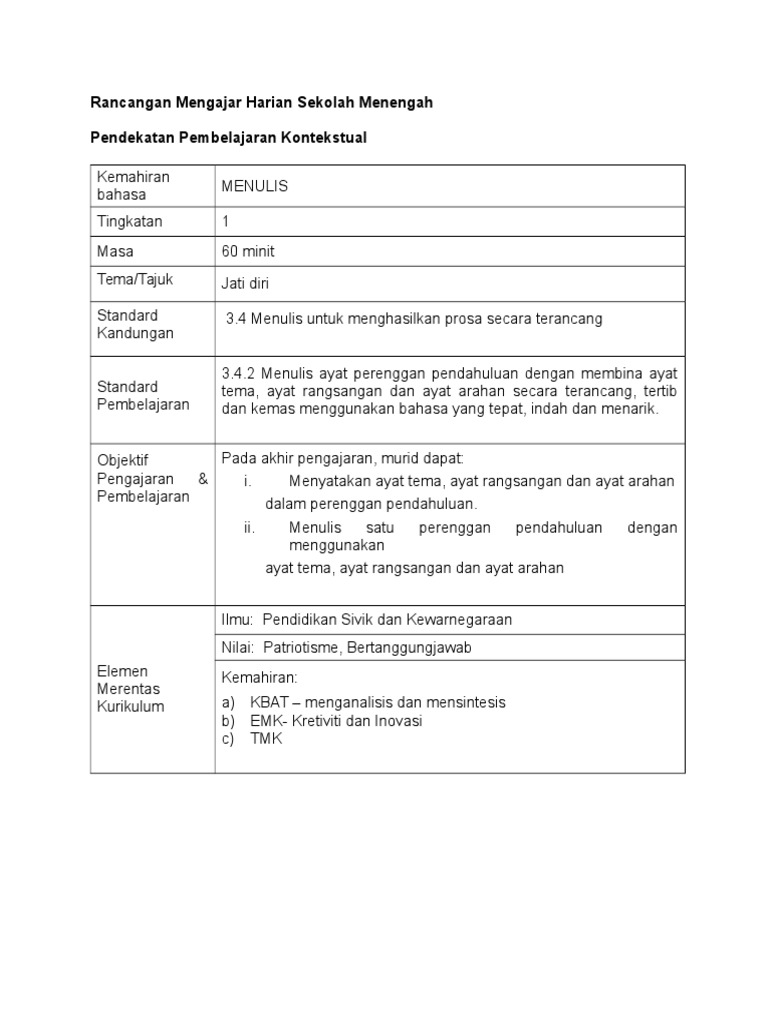 Rancangan Pengajaran Harian Bahasa Melayu Tingkatan 1 Pdf